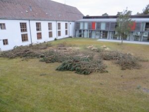 [vc_row][vc_column width=“2/3″][vc_column_text]Leider musste Ende Januar die Gruppe der drei Föhren gefällt werden, die „schon immer“ neben dem ehemaligen Seminar auf