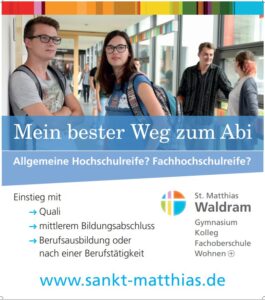 Uncategorized Infoabend am 1. Juli 2026 Wenn Sie die Einrichtung St. Matthias mit den Schulen Gymnasium, Kolleg und Fachoberschule näher kennenlernen und mehr über unser schulisches Zum Artikel Januar 7, 2026