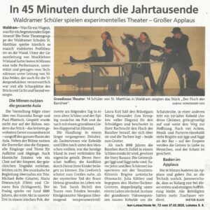 [vc_row][vc_column width=“2/3″][vc_column_text css=““] Am Freitag, 21. März, führte der Kurs „Theater und Film“ der Klassen P12 und K II unter