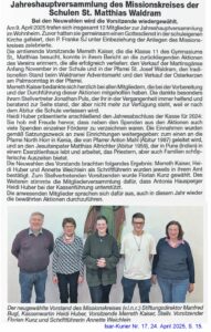 [vc_row][vc_column width=“2/3″][vc_column_text css=““] Der Missionskreis St. Matthias e.V. , der durch seine Tätigkeit ehemalige Schüler unterstützt, die nun in der